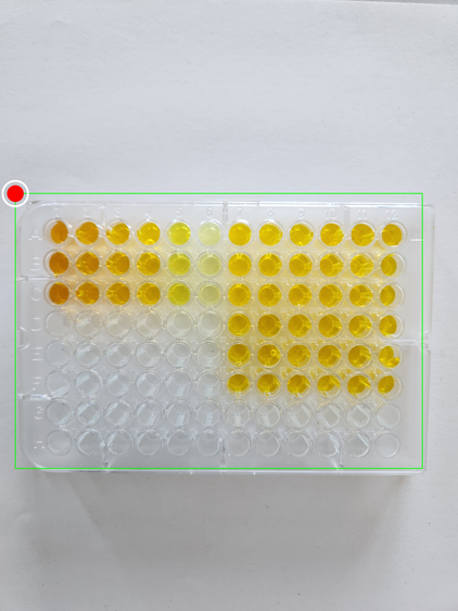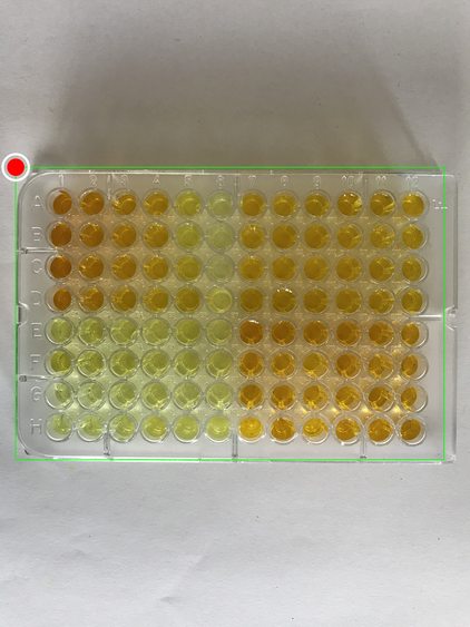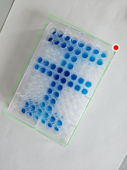 The system identifies plate orientation and marks the corner nearest A1 with a red marker, ready for downstream analysis.